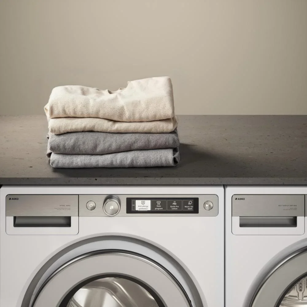 Сушильная машина с тепловым насосом Asko T710HUXLW.P дизайн серии STYLE+, белая. Новинка 2025 года. Загрузка 10 кг, шум 61 дБ. 20 программ и 3 режима сушки, есть корзина для сушки деликатных предметов (обувь, шерсть, мягкие игрушки, подушки). Сушильная машина Аско T710HUXLW.P есть гипоаллергенная программа,